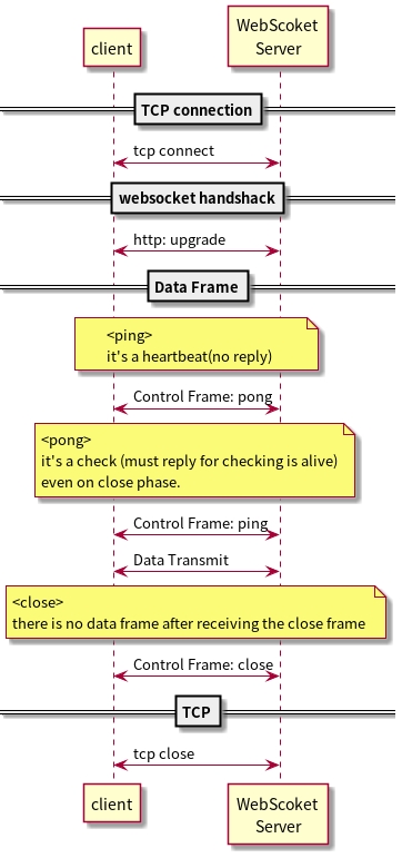 ● Pong (not only reply ping but it can serve as a unidirectional heartbeat) If an endpoint receives not only one ping, that May elect the most recent ping to reply a Pong.