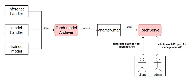 TorchServe 預設 8080 port 用於 inference ; 8081 port 用於管理 TorchServe 如下圖: